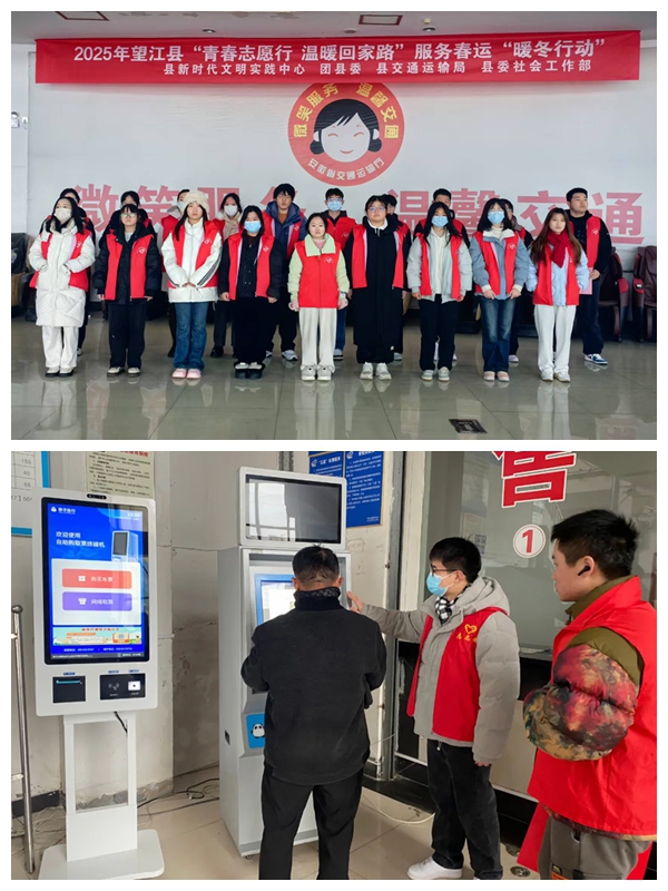 2025年1月14日,春運(yùn)首日,望江縣客運(yùn)中心站協(xié)助縣新時(shí)代文明實(shí)踐中心、團(tuán)縣委、縣交通運(yùn)輸局及縣委社會(huì)工作部,共同發(fā)起“青春志愿行 溫暖回家路”為主題的“暖冬行動(dòng)”。活動(dòng)旨在為春運(yùn)旅客,特別是老幼病殘?jiān)械忍厥馊后w,提供全面服務(wù)。